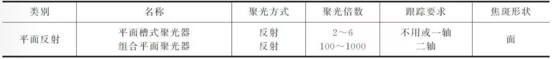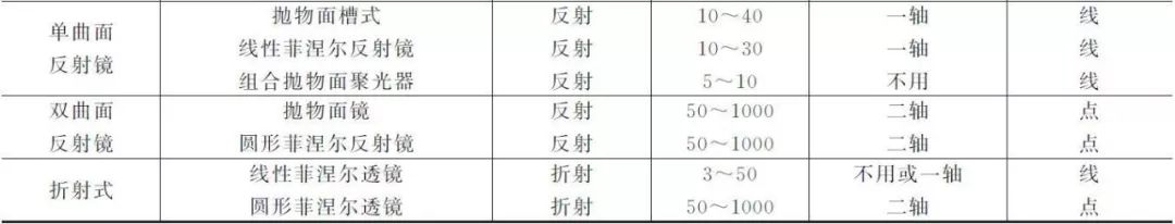 ▼ 几类槽式和线性菲涅尔式电站相关的聚光器