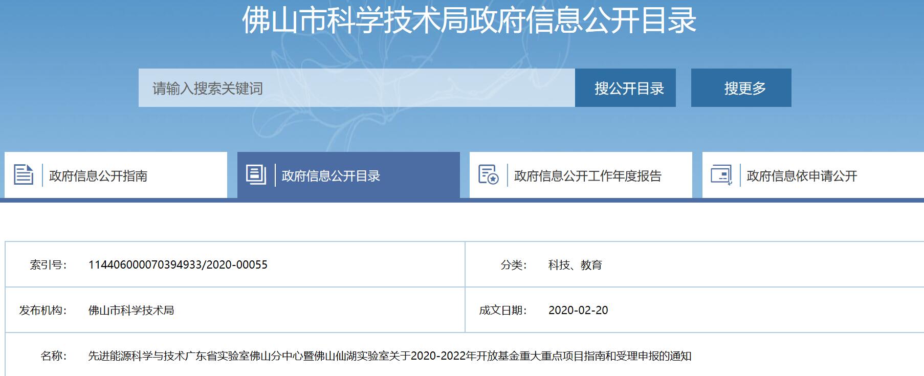 2月20日,先进能源科学与技术广东省实验室佛山分中心暨佛山仙湖实验室(以下简称“实验室”)发布《关于2020-2022年开放基金重大重点项目指南和受理申报的通知》,表示将设置开放基金,并公布了《2020-2022年开放基金重大项目指南》,其中涉及光热相关研究项目:30Nm³/h光伏制氢与光热制氢关键技术及示范。