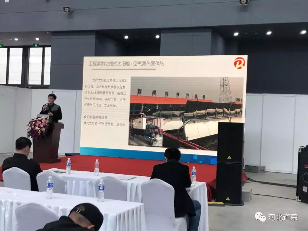 太博会同期举办了第二届2019中国太阳能清洁供暖高峰论坛,河北道荣副总李峰现场作了《太阳能光热企业自我认知及产业迭代分析》主题分享,关键词是高品位太阳能光热。多能互补微电智能系统将能源大数据技术跨界整合到了采暖系统,实现了行为节能、用户端傻瓜式操作,设备无人值守,自动监控监测、远程调温及远程售后服务。