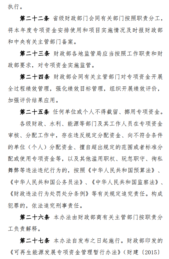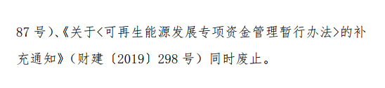 本办法自2020年7月1日起施行。财政部印发的《可再生能源发展专项资金管理暂行办法》(财建〔2015〕887 号)、《关于<可再生能源发展专项资金管理暂行办法>的补充通知》(财建〔2019〕298 号)同时废止。