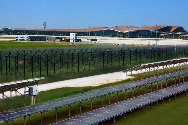 北京市发改委相关负责人早前表示,大兴国际机场贯彻绿色建设理念,高效利用各种能源,作为全世界屈指可数的超大型航空综合交通枢纽,其可再生能源总量将占机场年综合能源消费总量10%以上,其中跑道周边铺设光伏系统,年均发电量约占机场总能源使用的1%。