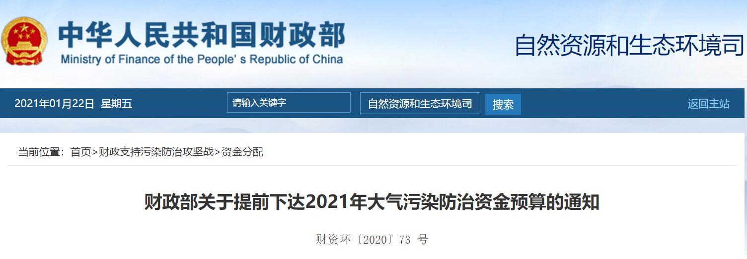 近日,财政部发布《关于提前下达2021年大气污染防治资金预算的通知》,附件明确2021年北方地区冬季清洁取暖试点补助资金试点城市名单及资金额,2021年总计安排清洁取暖试点补助资金73.4亿元。