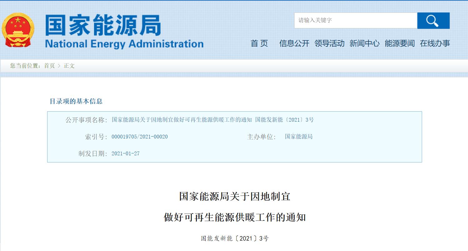 附政策解读|国家能源局发布《关于因地制宜做好可再生能源供暖工作的通知》