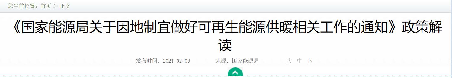 2月8日,国家能源局发布了《国家能源局关于因地制宜做好可再生能源供暖相关工作的通知》政策解读。两份通知转发如下: