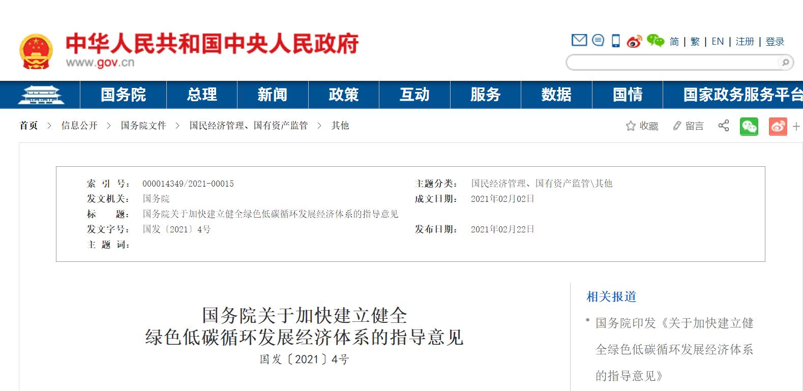 2月22日,国务院发布关于加快建立健全绿色低碳循环发展经济体系的指导意见(以下简称《意见》)中提出建立健全绿色低碳循环发展经济体系,促进经济社会发展全面绿色转型,是解决我国资源环境生态问题的基础之策。
