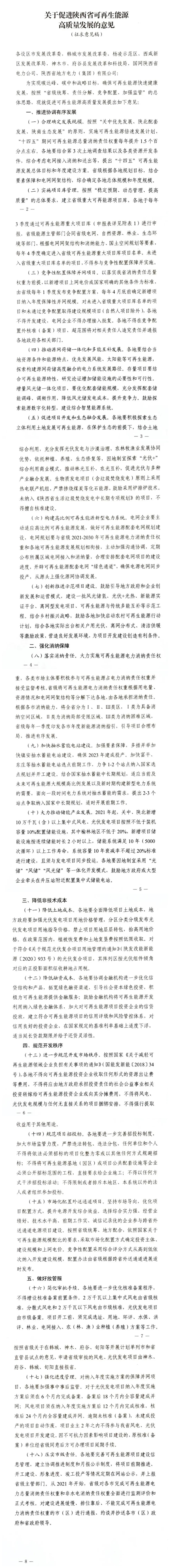 日前,陕西省能源局印发《关于促进陕西省可再生能源高质量发展的意见》(征求意见稿),提出创新推进示范项目建设,鼓励引导地方政府和企业创新发展和运营模式,建设一批风光储氢、光伏+光热、新能源实证平台、离网型发电项目、可再生能源与传统多能互补等工程示范。
