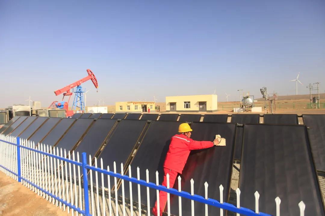 在太阳能热利用方面。华北油气采油一厂将太阳能和空气源热泵热水系统结合起来,组成空气源热泵与太阳能热水耦合系统,形成“太阳能集热器+空气源热泵+电加热”单井集成加热模式,实现源头减投入、运行降成本。经过3年多建设,该厂共推行“太阳能集热器+空气源热泵+电加热棒”加热设备26台套,淘汰燃煤锅炉31套,单井日用电量从1150千瓦时降至430千瓦时。同时,通过采取“端点加药加快油水分离、先排水后加热、推广应用地暖管线换热”等一系列技改革新措施,节能增效显著。“通过技术革新,原油加热工艺更加合理,加热效率大幅提升,减少无效加热56%,年可节省加热成本200多万元。”采油一厂厂长吴旭光介绍。