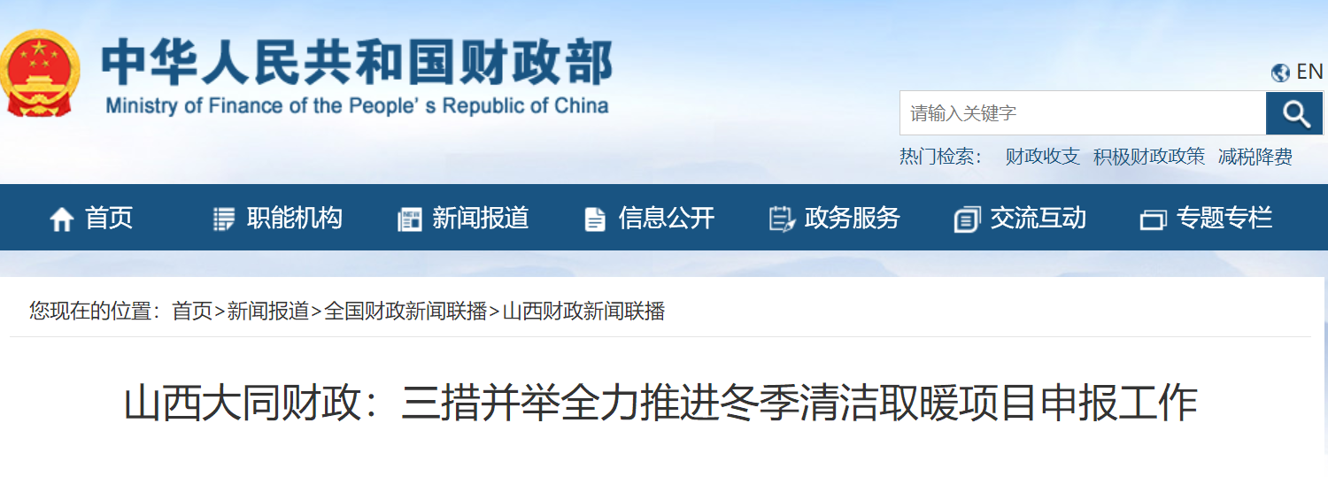 近日,财政部网站刊发了题为《山西大同财政:三措并举全力推进冬季清洁取暖项目申报工作》的文章。文章对于农村地区清洁能源采暖,提出:介于农村地区是清洁取暖改造和散煤管控的重难点,争取的财政资金将重点向农村地区倾斜,主要用于设备改造、运行补贴及建筑能效提升。同时,市级财政将给予电网、热网改造一定比例资金补助。三是减轻居民负担。在农村地区大力推广“太阳能+电辅热”,取暖费用不超过1000元/年,保障在居民可承受范围。三年实施期结束后,可再生能源取暖用户不需继续补贴,对煤改气、电锅炉取暖用户,根据实际采暖费用支出,制定差异化的补贴政策,切实减轻老百姓取暖负担,杜绝散煤复燃,进一步巩固清洁取暖改造成效。