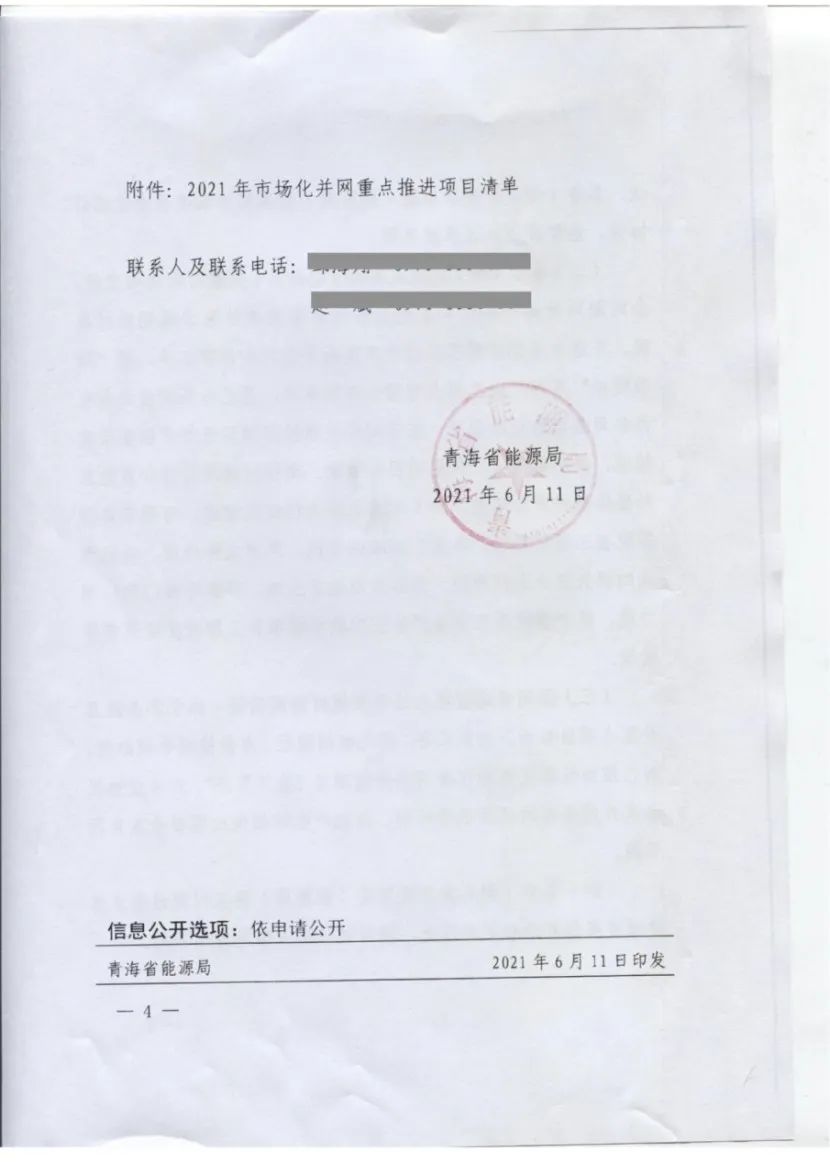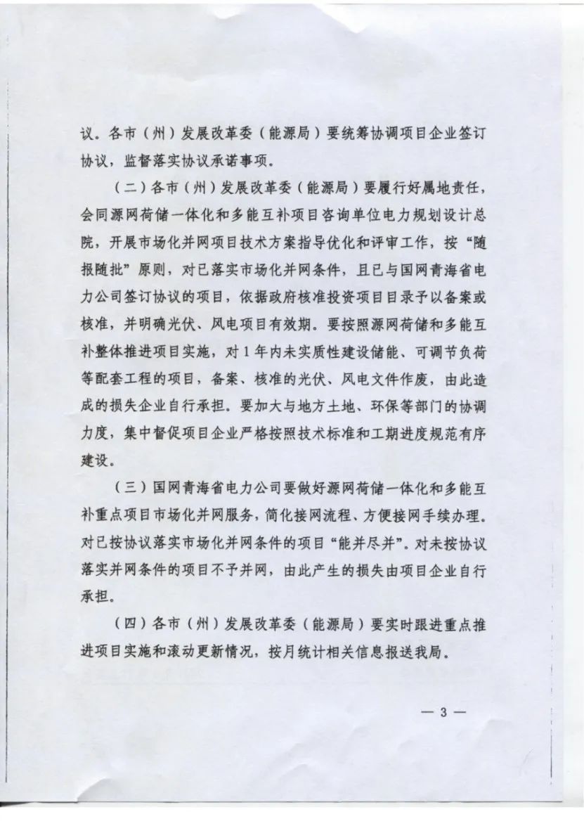 另外,通知要求,有关项目企业要主动衔接国网青海省电力公司落实市场化并网条件后,签订市场化项目并网协议,承诺自建储热型光热、新型储能、可调节负荷等配套工程调节能力、建成时间,涉及非自建负荷等配套工程的项目需联合负荷所有方共同签订协议。各市(州)发展改革委能源局要统筹协调项目企业签订协议,监督落实协议承诺事项。