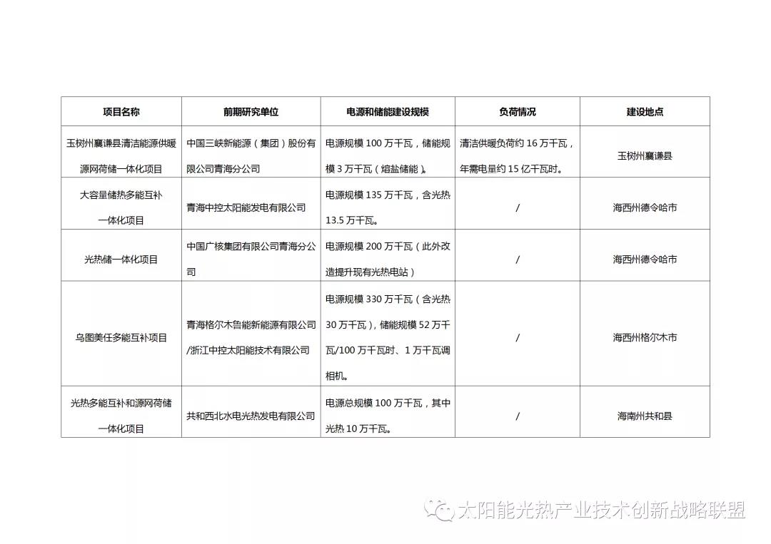 其中:青海众控太阳能发电有限公司大容量储热多能互补一体化项目,中国广核集团有限公司青海分公司光热储一体化项目,青海格尔木鲁能新能源有限公司/浙江中控太阳能技术有限公司乌图美仁多能互补项目,海南州共和西北水电光热发电有限公司光热多能互补和源网荷储一体化项目,以及中国三峡(集团)股份有限公司青海分公司玉树州囊谦县清洁能源供暖源网荷储一体化项目等多个含光热发电和熔盐储能项目的市场化并网项目成功入选该名单。这些项目位于海西州德令哈市、海西州格尔木市、海南州共和县和玉树州囊谦县。