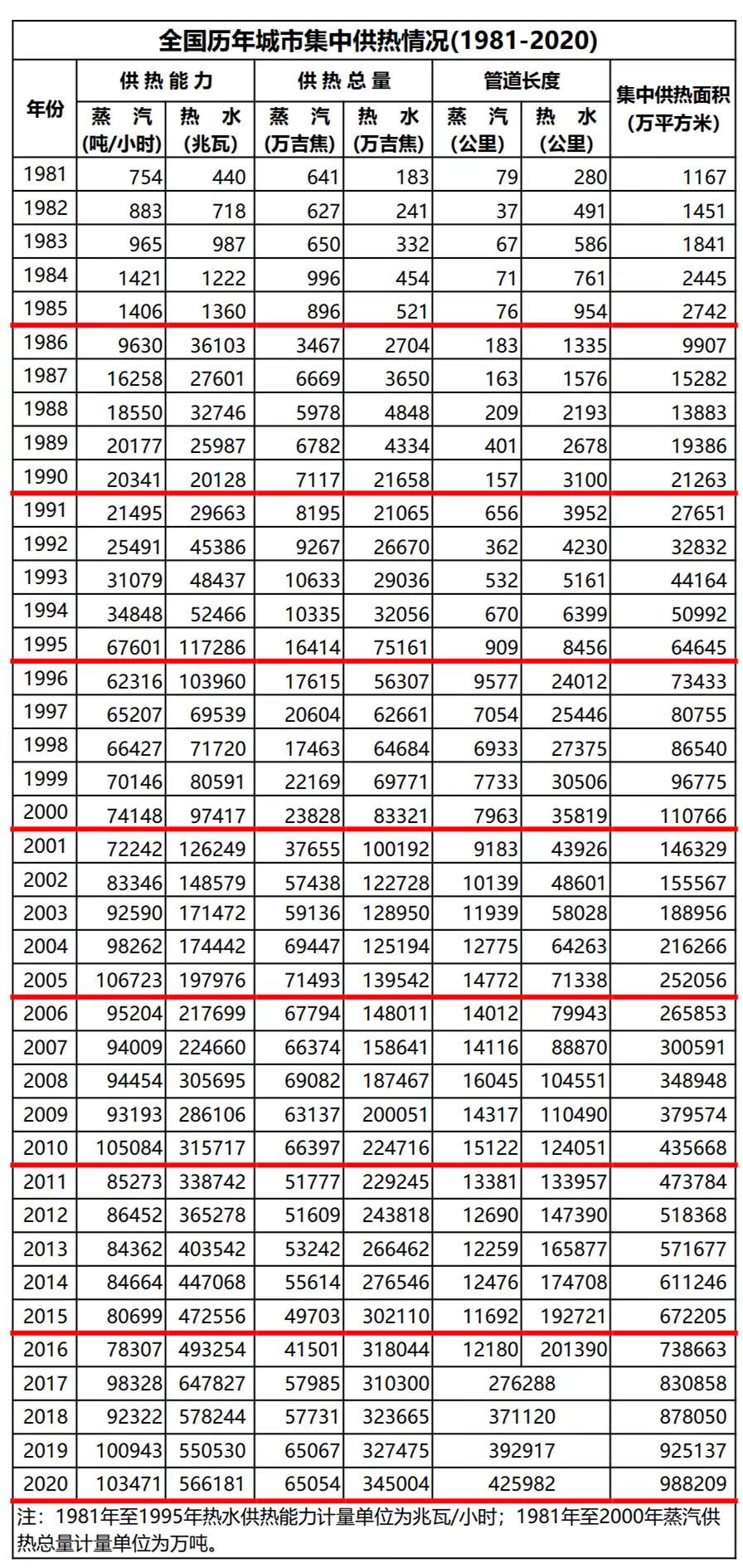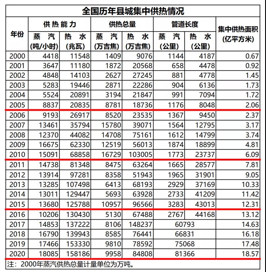 2021年10月12日,住房和城乡建设部发布《2020年城市建设统计年鉴》和《2020年城乡建设统计年鉴》,公布了1981年至2020年全国历年城市集中供热情况以及2000年至2020年全国历年县城集中供热情况。