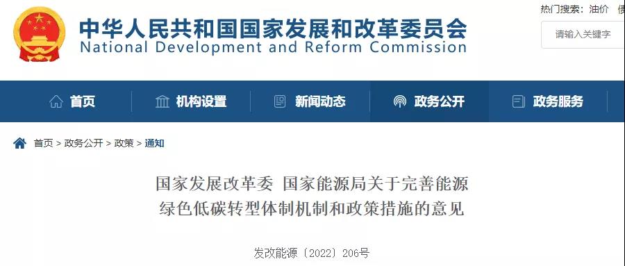2月10日消息,国家发展改革委 、国家能源局发布《关于完善能源绿色低碳转型体制机制和政策措施的意见》(发改能源〔2022〕206号)。意见指出,推动构建以清洁低碳能源为主体的能源供应体系。以沙漠、戈壁、荒漠地区为重点,加快推进大型风电、光伏发电基地建设,支持新能源电力能建尽建、能并尽并、能发尽发。
