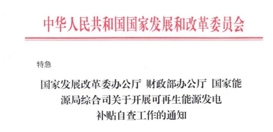 为落实中央领导同志重要指示精神,加强可再生能源发电补贴资金使用管理,促进可再生能源行业高质量发展,决定在全国范围内开展可再生能源发电补贴核查工作,通过企业自查、现场检查、重点督查相结合的方式,进一步摸清可再生能源发电补贴底数,严厉打击可再生能源发电骗补等行为。现就企业自查有关要求通知如下: