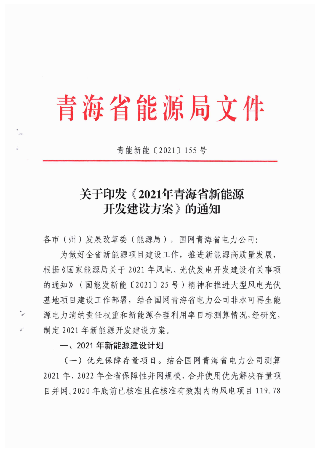 青海:未纳入2021年新能源开发方案的市场化项目一律暂缓实施