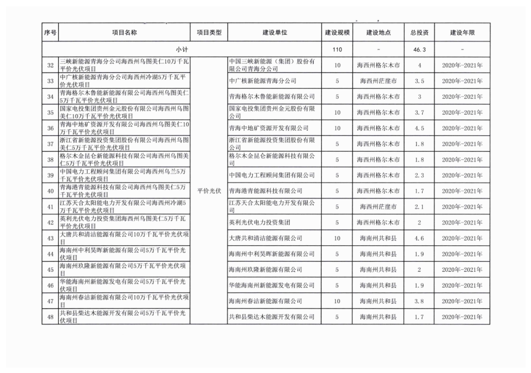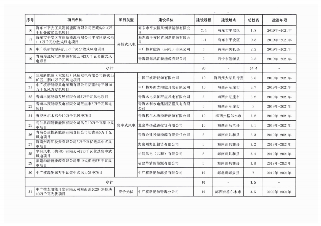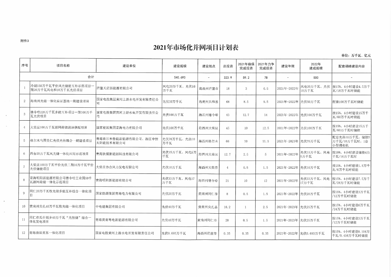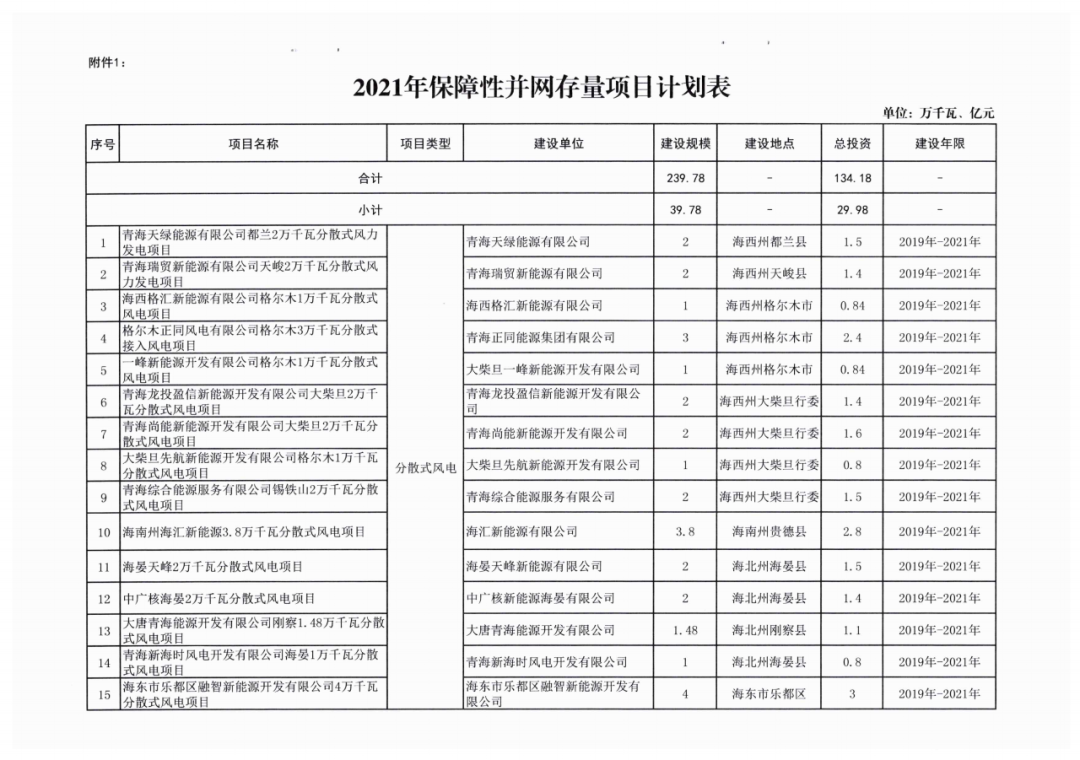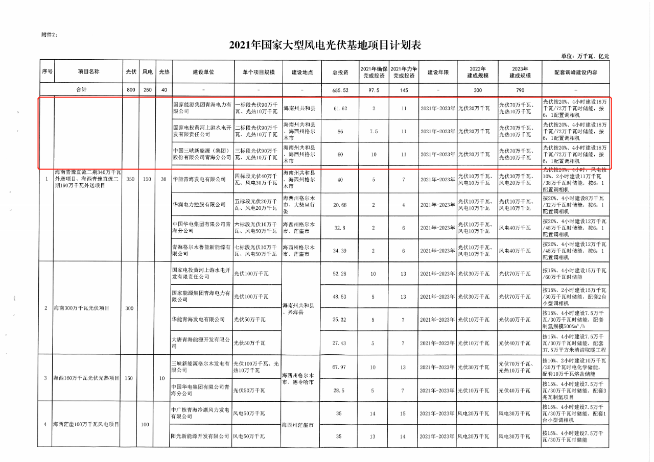 附:2021年青海省新能源开发建设方案及详细项目名单情况