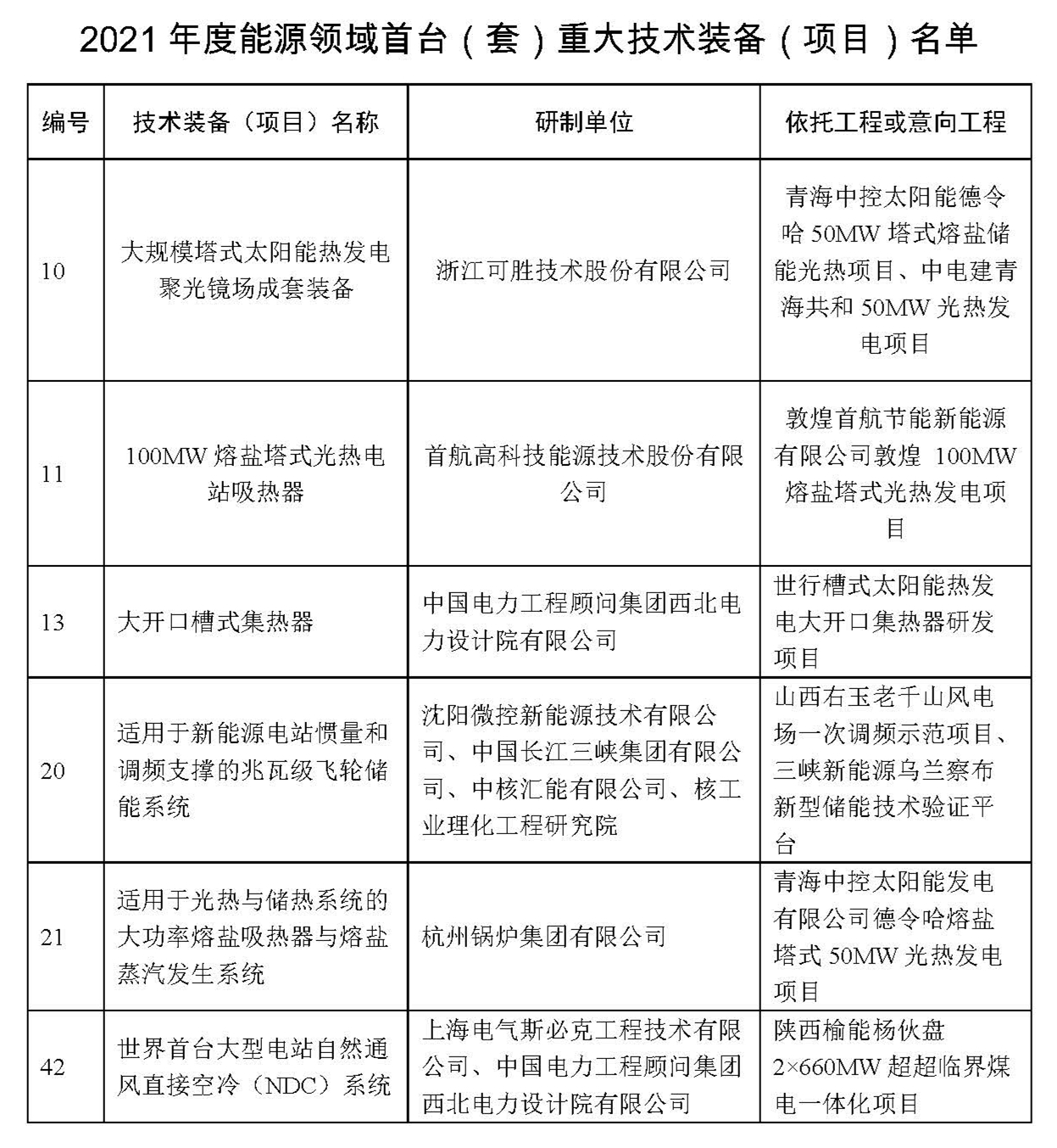 5月13日,国家能源局公告了列为“2021年度能源领域首台(套)重大技术装备项目”的75个技术装备(项目)名单。其中,多家太阳能光热联盟光热理事单位研制的技术装备(项目)入选。