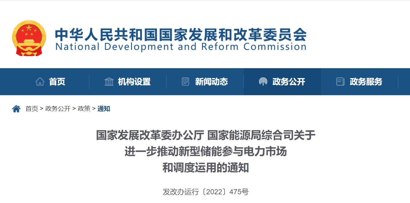 6月7日,国家发改委 国家能源局发布《关于进一步推动新型储能参与电力市场和调度运用的通知》。