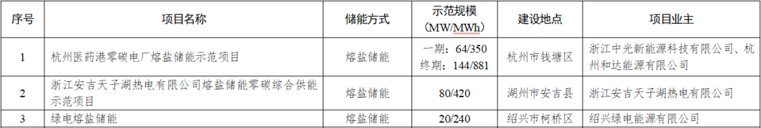 在《浙江省“十四五”第一批新型储能示范项目》名单中,包括杭州医药港零碳电厂、安吉天子湖热电零碳综合供能、柯桥绿电三个熔盐储能技术示范项目。