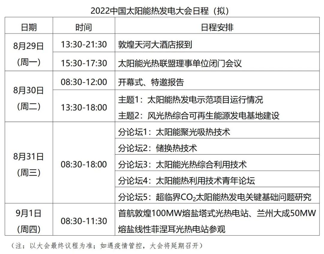 2022中国太阳能热发电大会将于8月底在敦煌召开