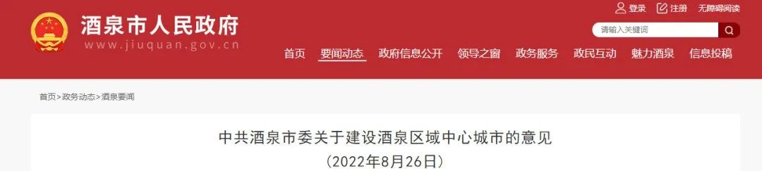 近日,中共酒泉市委发布关于建设酒泉区域中心城市的意见,意见指出加快创建全国新能源产业示范区。