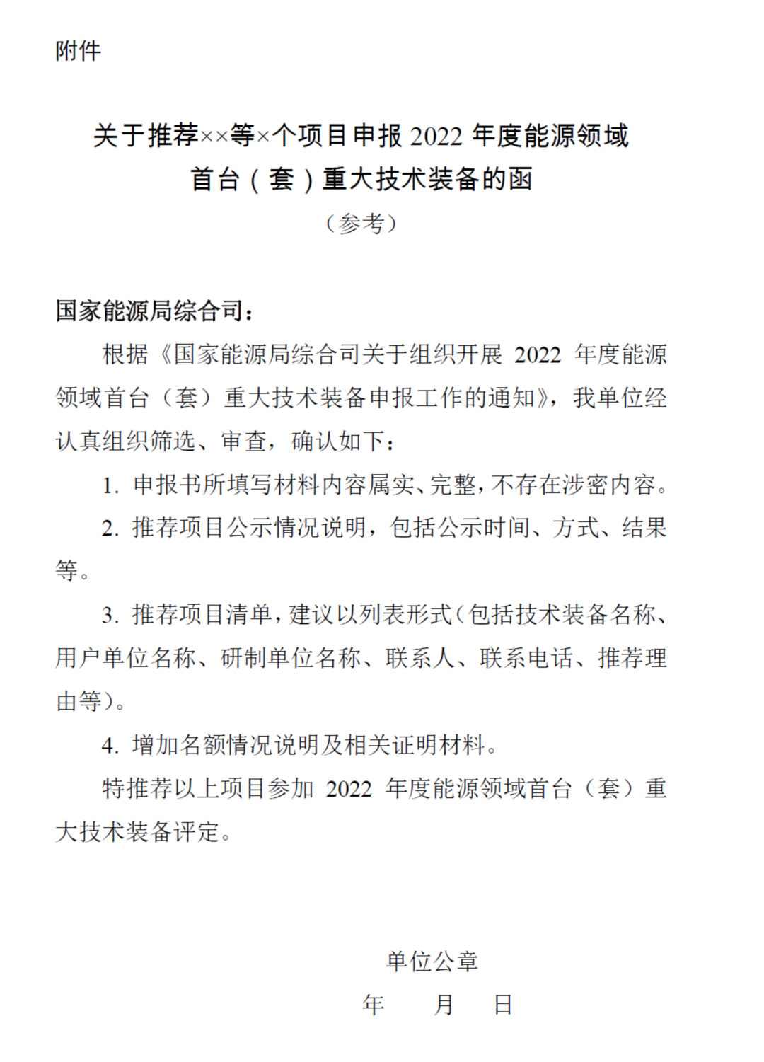 (四)请有关单位高度重视能源领域首台(套)重大技术装备申报工作,结合本地区、本企业实际,按照公正、公开、公平、透明的原则组织好申报和推荐工作。