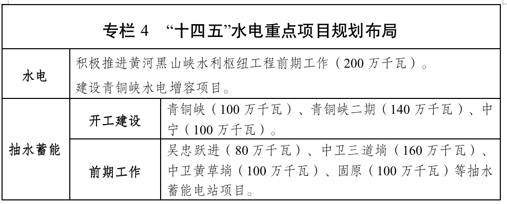 2.加快抽水蓄能电站开发。加快开工建设青铜峡、青铜峡二期、中宁等抽水蓄能电站,力争“十四五”期间完成青铜峡抽水蓄能电站库体工程。积极推进吴忠跃进抽水蓄能电站前期工作,扎实开展抽水蓄能中长期规划储备项目研究论证,因地制宜开展中小型抽水蓄能研究。