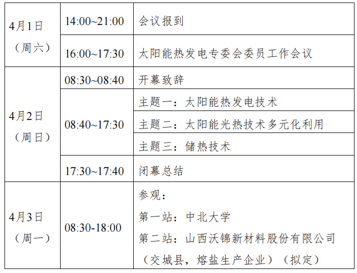 中国可再生能源学术大会太阳能热发电分会将于4月2日在太原举行