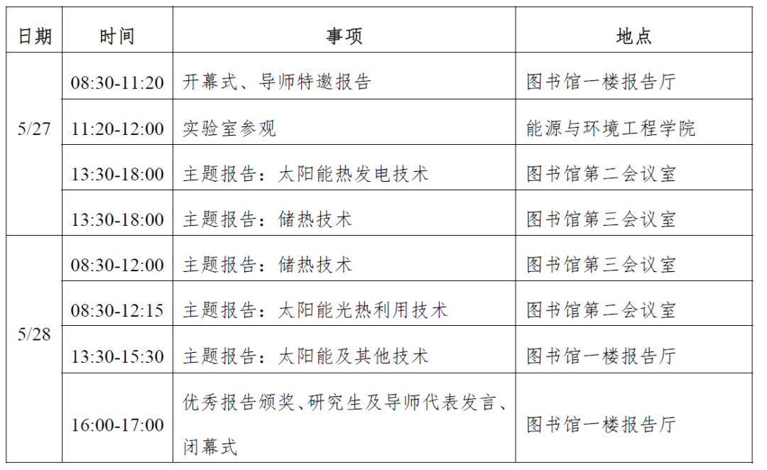 议程发布!第十三届太阳能热利用科学技术研究生论坛将于5月27日天津召开