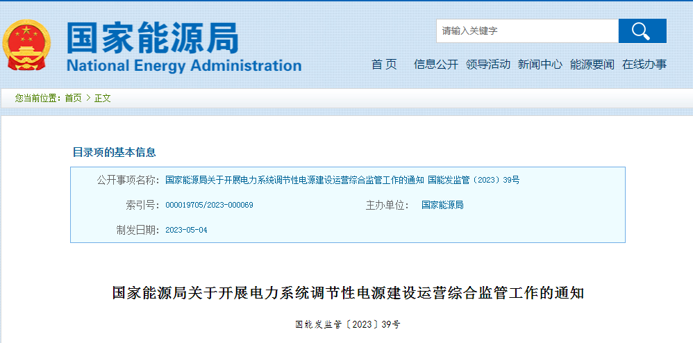 5月16日,国家能源局发布《关于开展电力系统调节性电源建设运营综合监管工作的通知》(国能发监管〔2023〕39号)提出,开展抽水蓄能、煤电灵活性改造机组、燃气发电、调节性水电、新型储能等灵活调节性电源及资源建设运营综合监管,全面摸清底数,聚焦规划建设、调度运行、市场交易、价格机制等方面存在的突出问题,针对性地提出监管意见建议,推动相关政策完善落实,切实发挥调节性电源及资源在提升电力系统整体运行效率、保障电网安全稳定运行、促进清洁能源消纳等方面的支撑作用,助力新型电力系统建设和能源高质量发展。
