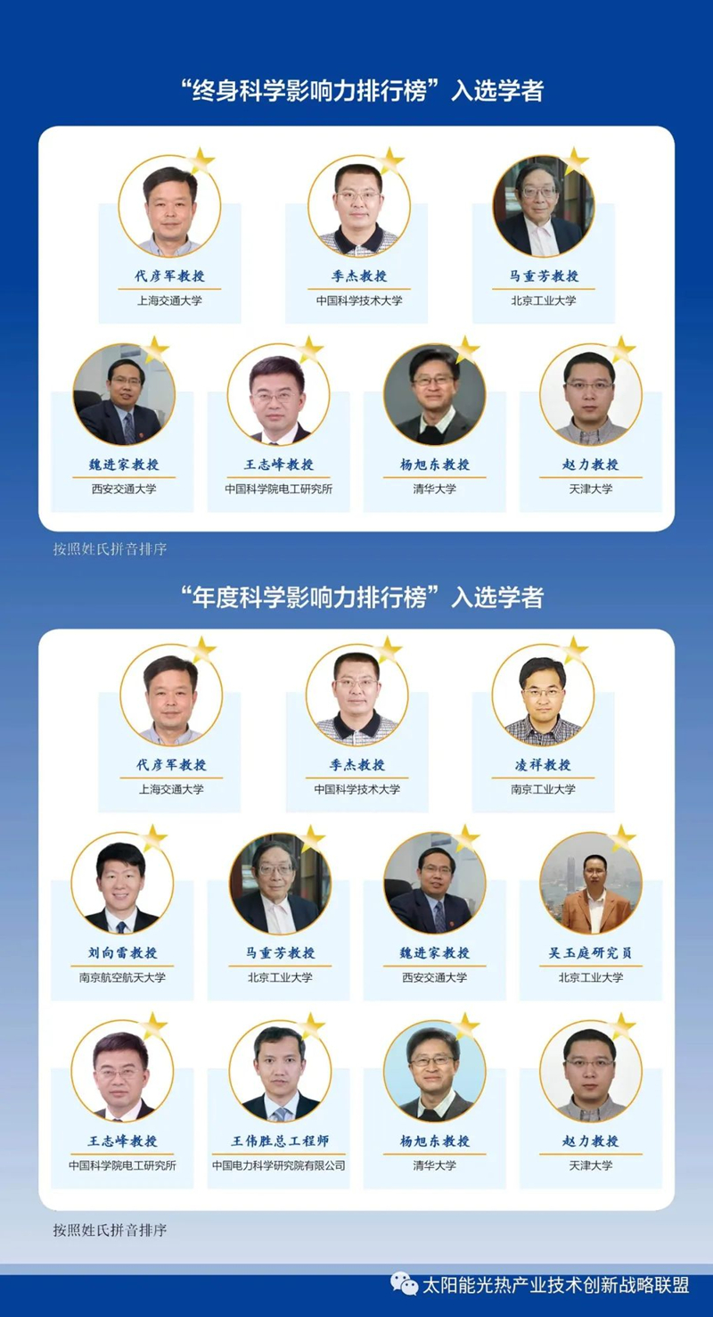 (简称:国家光热联盟)理事会和专家委员会成员,以及中国可再生能源学会太阳能热发电专委会委员等数十位专家学者上榜。
