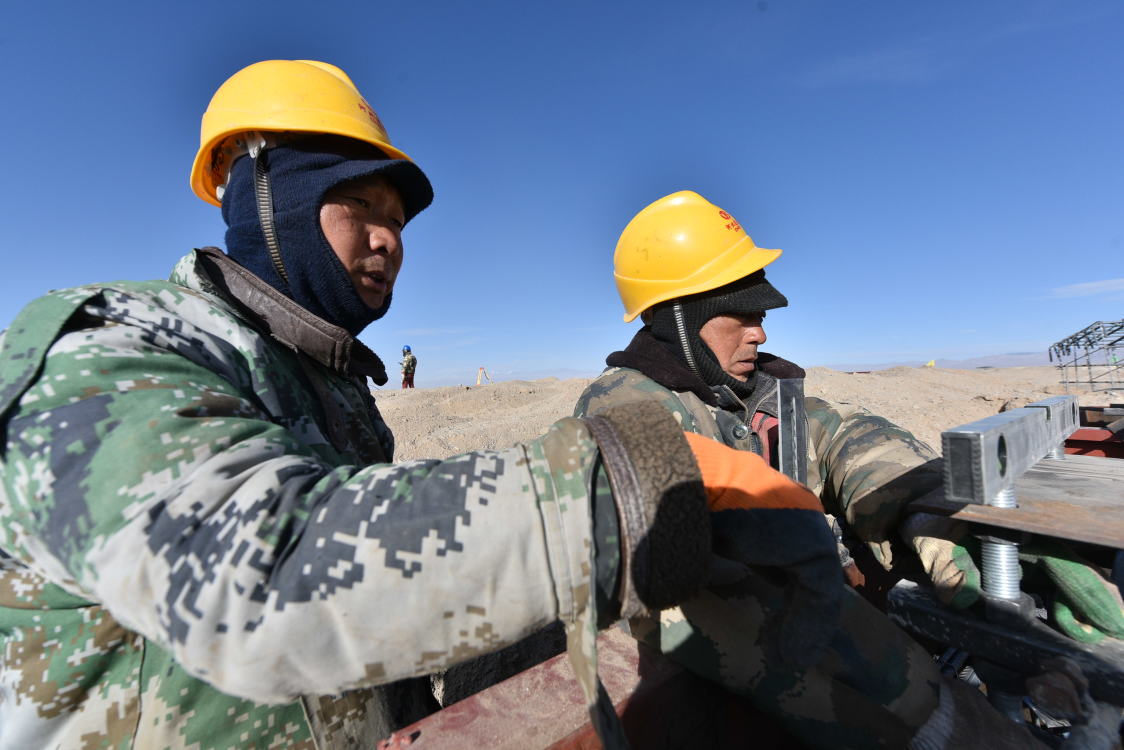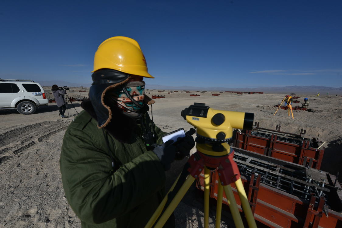 海拔3000米的阿克塞四十里戈壁太阳能热发电基地最低气温已经下降到了零下20多度,入驻基地企业的员工们冒着严寒,克服困难,为将“风吹石头跑”的戈壁,发展成“点亮万家灯火”清洁能源基地献智出力。