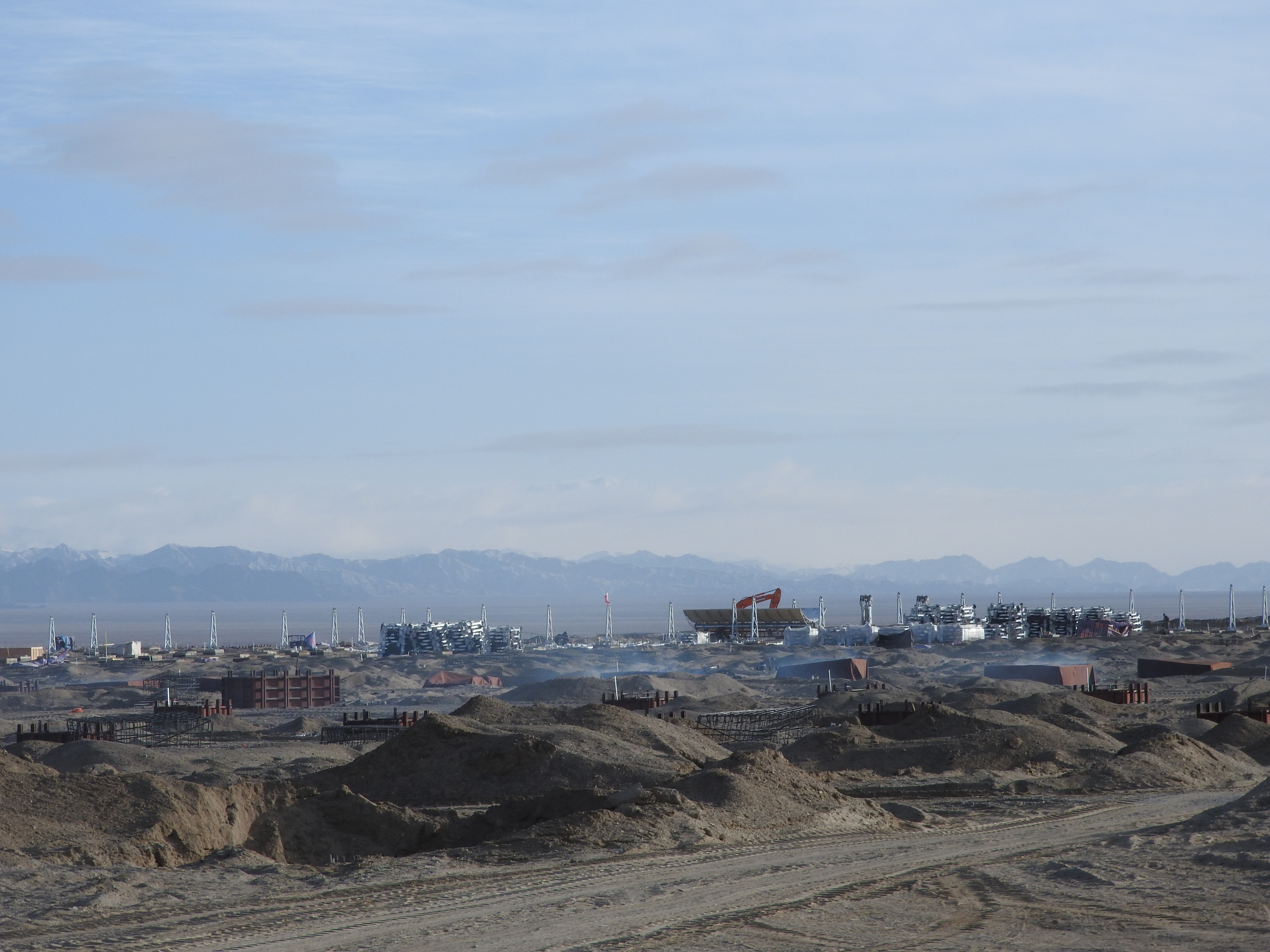 组图:金钒阿克塞50MW槽式熔盐光热发电示范项目建设现场