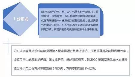 国家能源局鼓励多能互补项目的应用和发展,2016年安排了首批多能互补集成优化示范工程,共23个项目,其中,终端一体化集成供能系统17个、风光水火储多能互补系统6个。从新能源指标、上网电价、并网的便利性等方面给予一定的政策扶持。