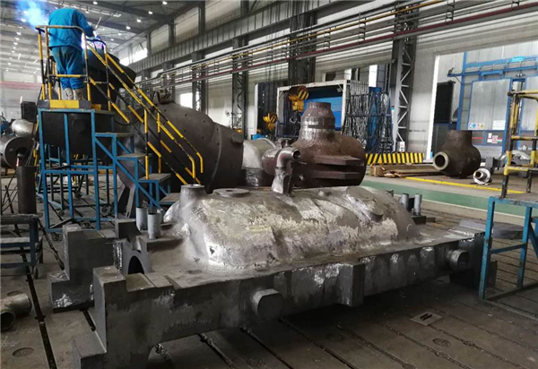 图:汽轮机高压缸转子和外缸正在紧张加工中