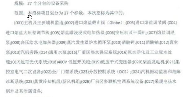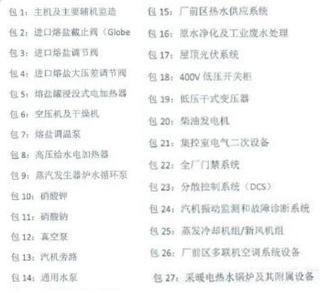 2月8日,中电工程哈密塔式50MW光热发电项目第三批辅机设备采购招标公告。发布27个包的项目招标: