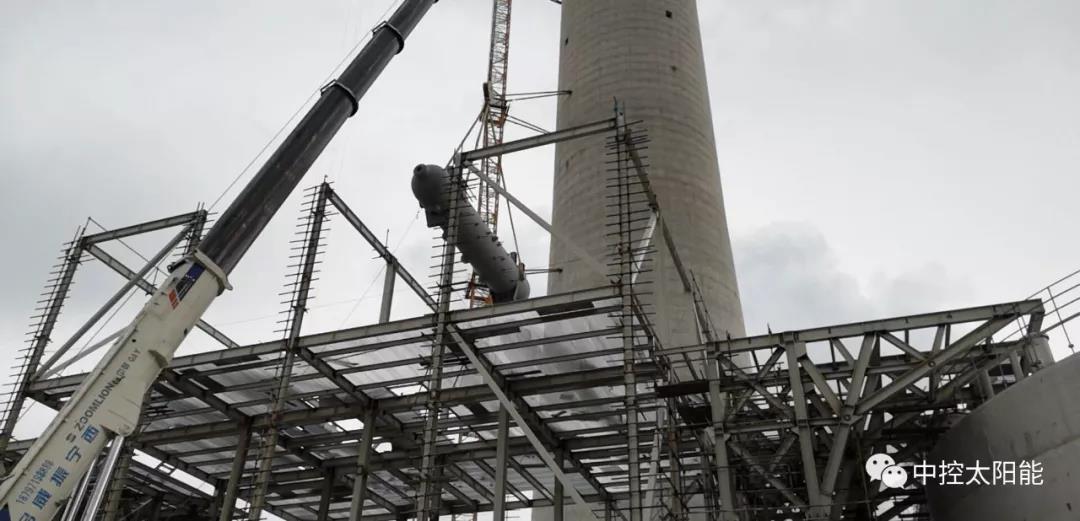 6月29日上午,中控太阳能德令哈50MW塔式熔盐光热发电项目随着储换热系统的汽包、再热器和过热器的顺利就位,标志着项目建设主体工程由土建施工阶段转向设备安装阶段。7月份汽轮机、吸热器等主要设备均会进入全面安装阶段,计划9月底完成电站主要设备的安装工作,为今年底顺利并网发电奠定了坚实的基础。