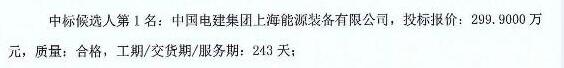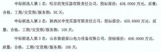 采购110KV主变压器中标候选人情况: