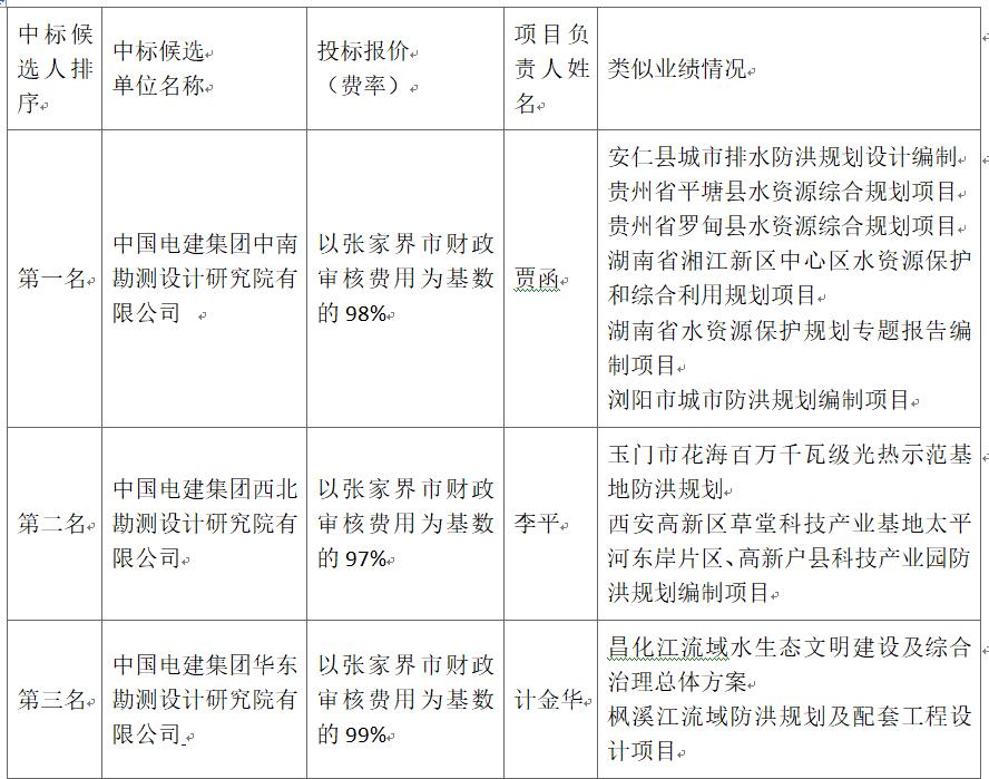 附:湖南省张家界市城市防洪规划编制项目中标候选单位公示