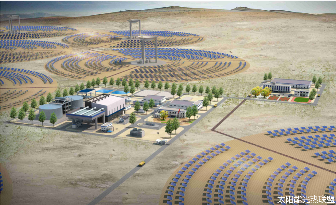 玉门鑫能50MW塔式熔盐光热示范项目占地面积约3.69平方公里,计划总投资17.9亿元,设计年发电量2.16亿千瓦时。项目建成后将有15个集热模块,配置9小时熔盐储能系统。并网发电后,每年可为2万户家庭提供100%的清洁电力,经济效益和节能减排效益显著。