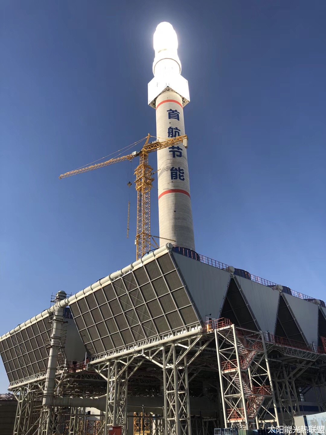 在100MW熔盐塔式光热电站项目施工现场看到: