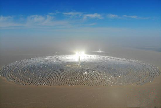 首航节能敦煌100MW熔盐塔式光热电站由北京首航艾启威节能技术股份有限公司研发并投资建设,完全拥有自主知识产权。项目占地近8平方公里,总投资超过30亿元,其镜场12000多面定日镜,每面115平方米,总反射面积达140多万平方米,是目前全球在建的单机容量最大的熔盐塔式光热电站。项目投运后,可实现24小时连续发电,一年发电量达3.9亿千瓦时。该项目每年能够减少碳排放35万吨,同时还能减少太阳对整个沙漠的辐射,减少大风对戈壁地表的影响,其生态效益相当于1万亩森林对自然的贡献。