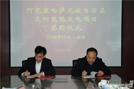 12月24日,阿克塞县委副书记张跃峰代表阿克塞县委、县政府与中核(南京)能源发展有限公司在南京正式签订了开发建设100MW槽式导热油光热发电项目的协议。该项目所在地为阿克塞县四十里戈壁千万千瓦级光热发电基地,装机规模为100MW,采用槽式导热油技术路线,计划总投资30亿元。 阿克塞县发改局(能源局)、农牧林水利局(水务局)、住建局(环保局)、国土局等相关单位负责人出席了签约仪式。