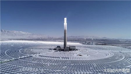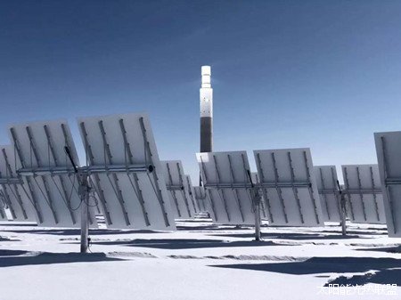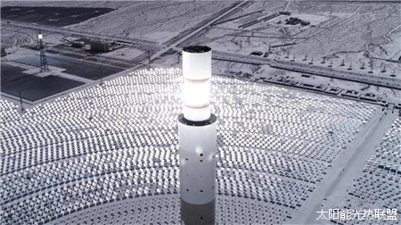 聚光中的吸热塔仿若照亮光热事业的灯塔