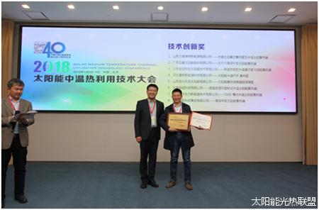 图:中国可再生能源学会热利用专委会秘书长何涛为五星太阳能颁奖