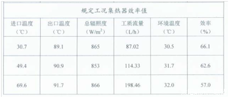 “当集热器入口温度30.7℃,出口温度89.1℃时,实测效率66.1%;集热器入口温度49.4℃,出口温度90.9℃时,实测效率62.6%;集热器入口温度69.9℃,出口温度91.7℃时,实测效率57.0%。”唐文学介绍道。