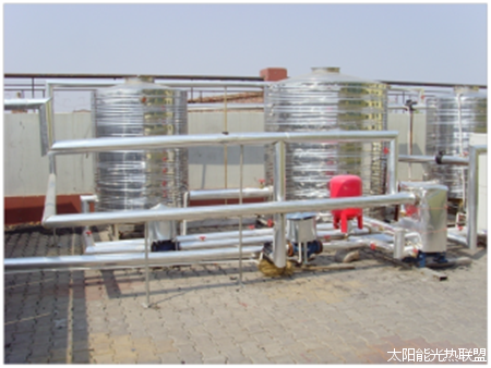 唐文学介绍说,太阳能在提供冬季部分采暖能源,在非采暖集热器可以为用户提供大量即热式生活热水供应,热水水质标准以进水相同,如果进水是自来水,则可用于达到饮用、做饭、洗碗洗菜使用,非采暖季节的生活用水太阳能保证率90%以上。五星太阳能在河北石家庄建设了太阳能耦合热泵的采暖系统。