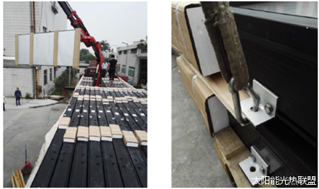 图:兰州某学校太阳能采暖项目集热器发货吊装现场