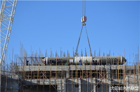 中电哈密熔盐塔式50MW光热发电项目汽包顺利吊装就位