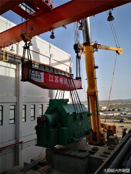 图:全国首台二次反射塔式50兆瓦光热发电项目发电机定子就位