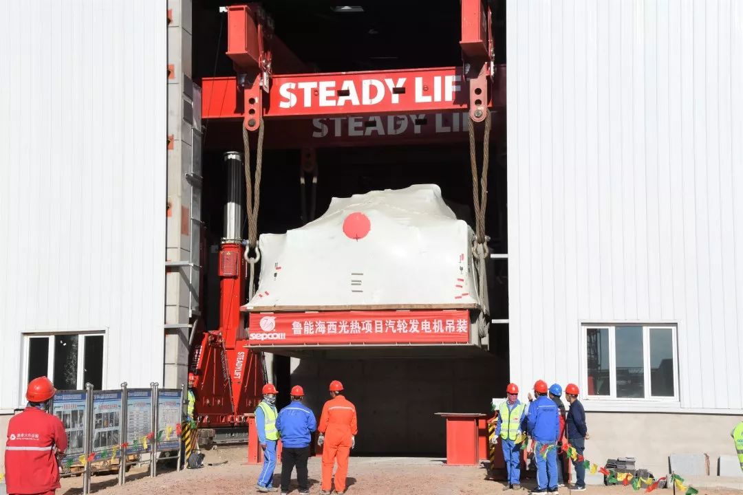 据鲁能集团青海新能源公司i消息:7月4日,鲁能海西州多能互补集成优化示范工程——50MW光热发电项目汽轮机及发电机顺利完成吊装。